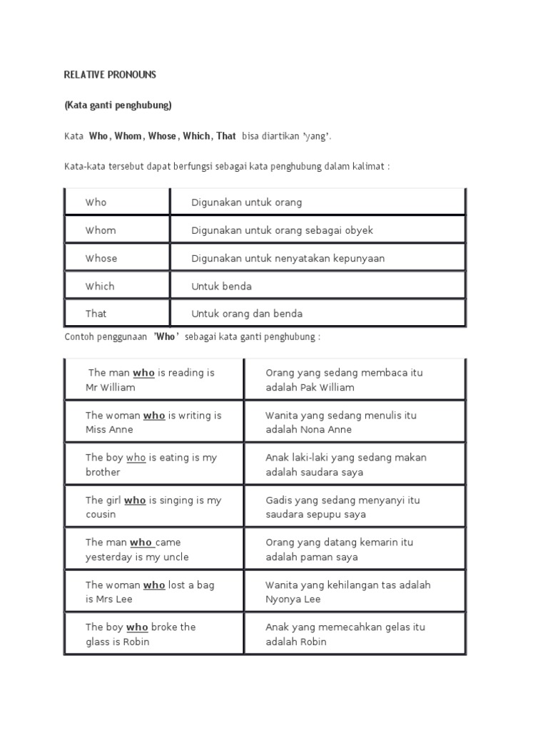 Relative Pronoun Kata Ganti Penghubung Belajar Grammar Bahasa