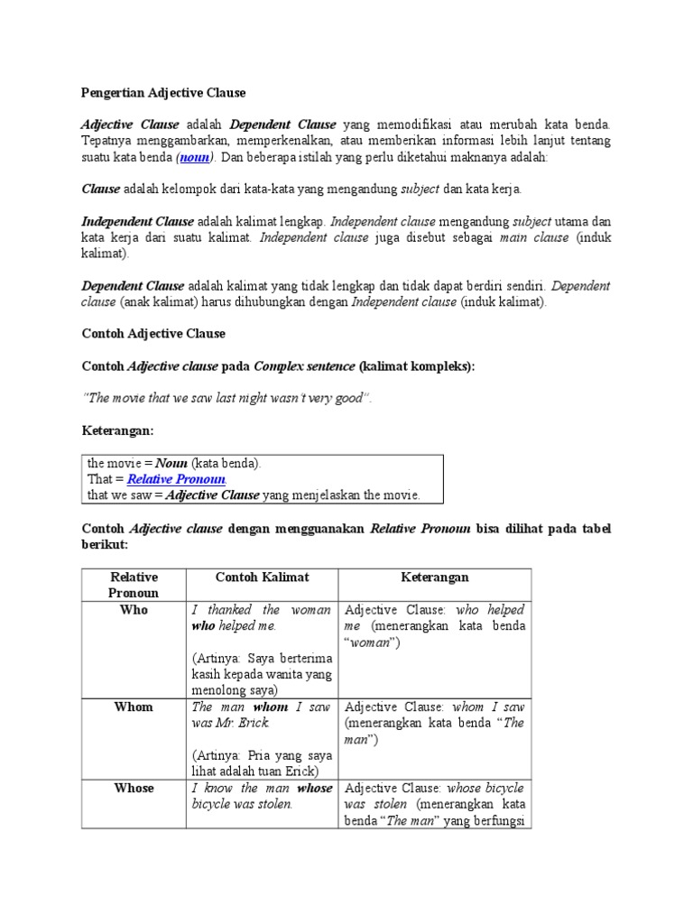 Pengertian Rumus Dan Contoh Adjective Clause Web Edukasi