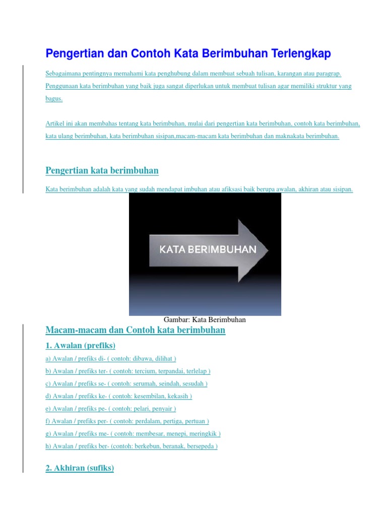 Pengertian Dan Contoh Kata Berimbuhan Terlengkap Docx