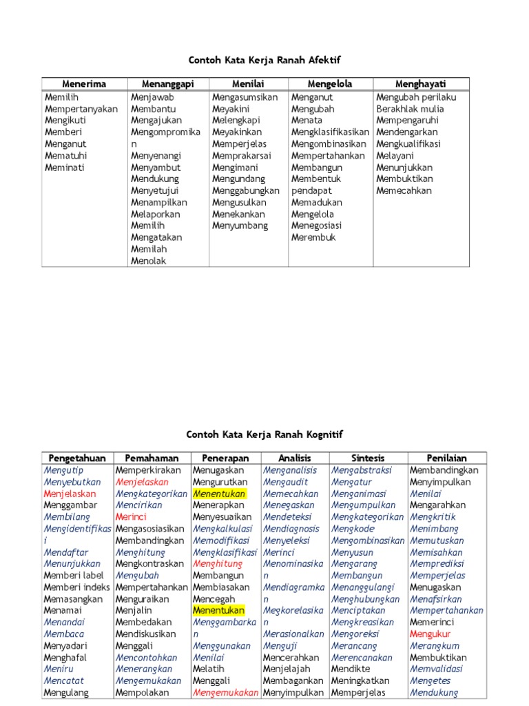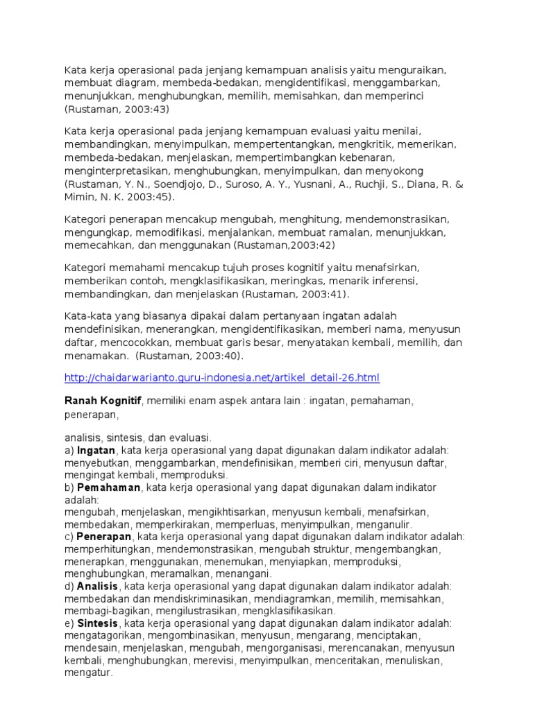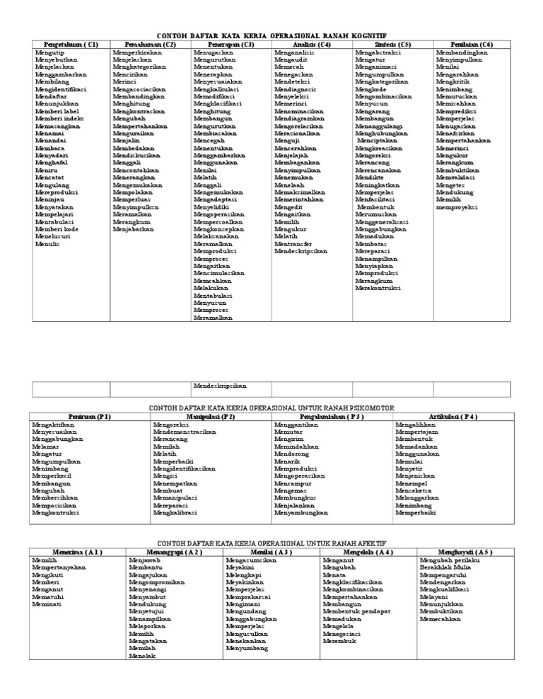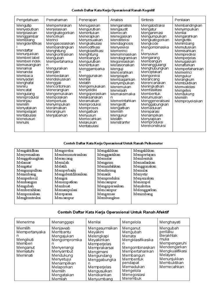 Doc Contoh Daftar Kata Kerja Operasional Ranah Kognitif Contoh