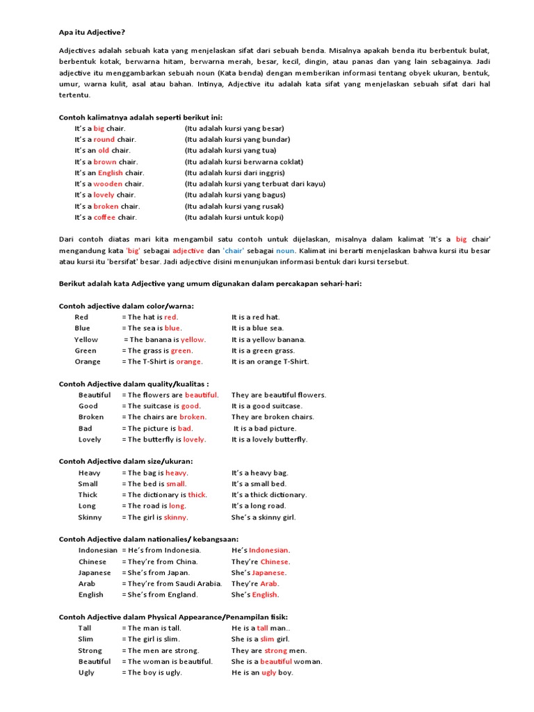 Contoh Kalimat Adjective Menggunakan Kata Kata Sederhana Englishcoo