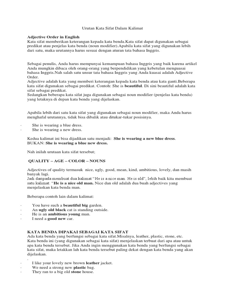 Urutan Kata Sifat Dalam Kalimat