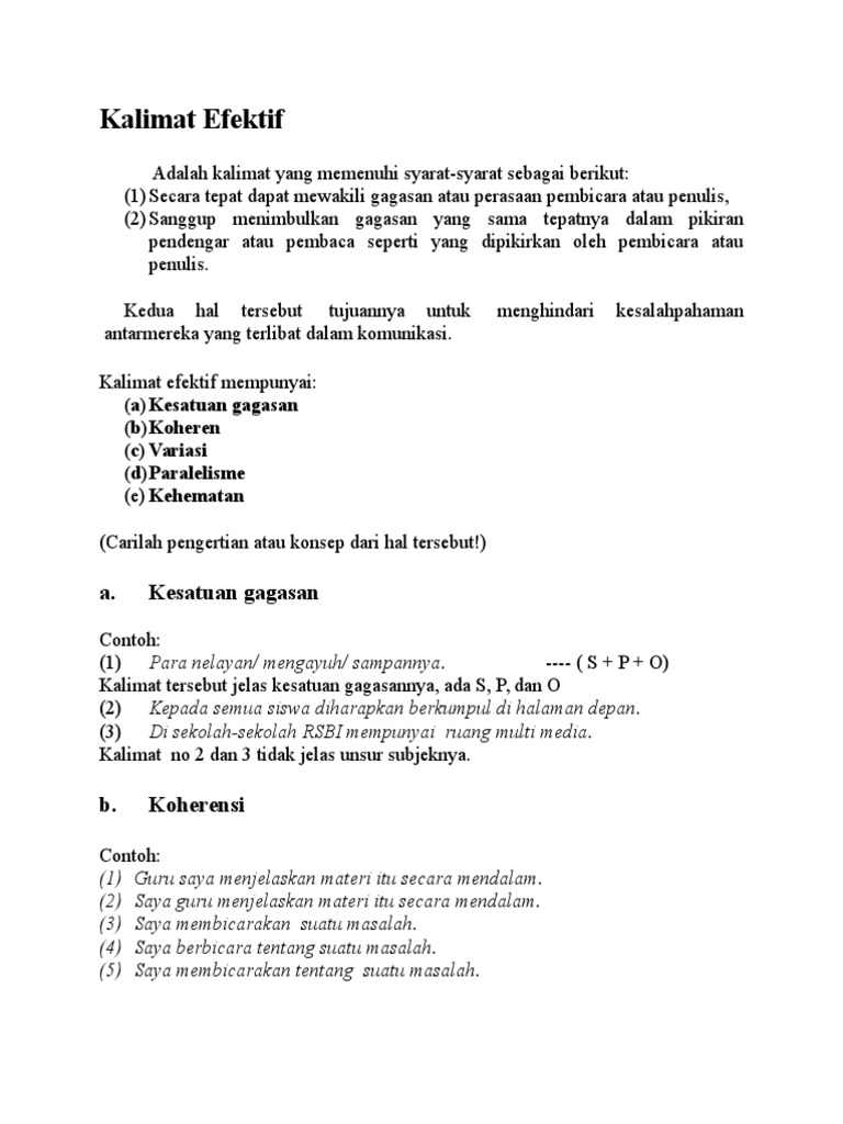 Kalimat Efektif Dan Tidak Efektif Contoh Pengertian Ciri Ciri Syarat
