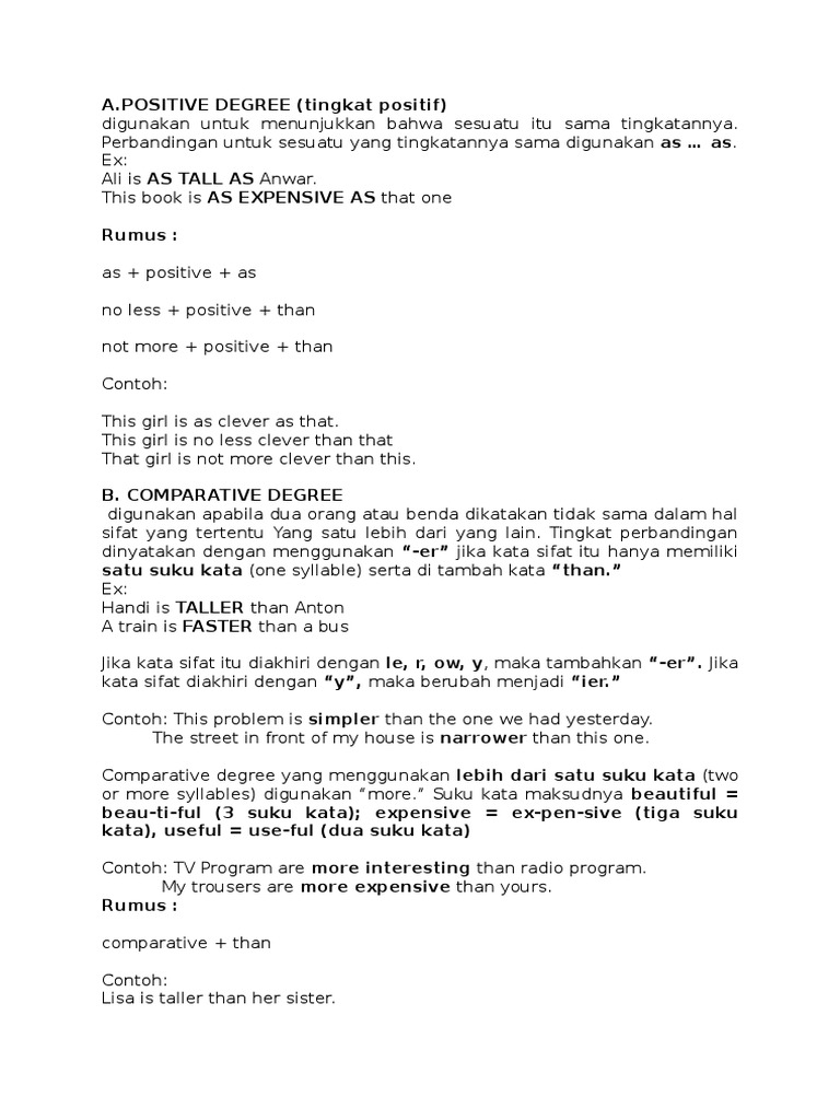 Contoh Kalimat Degree Of Comparison Positive Comparative