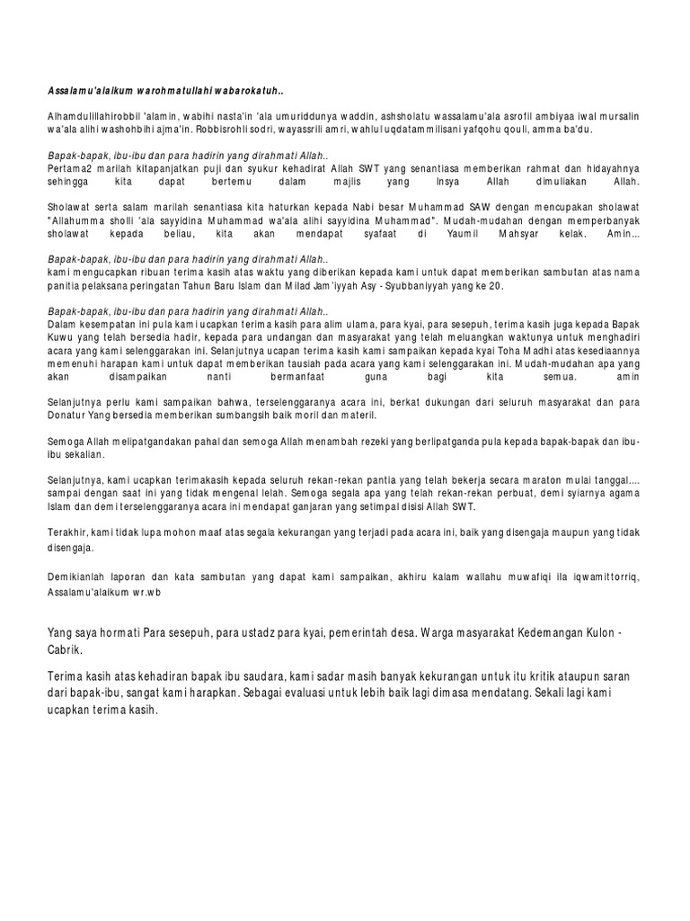 Contoh Kata Sambutan Ketua Panitia Maulid Nabi Saw Berita Terbaru