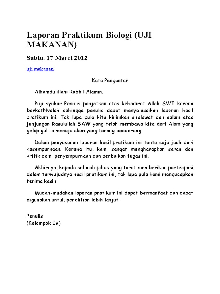 Contoh Kata Pengantar Laporan Praktikum Docx Document