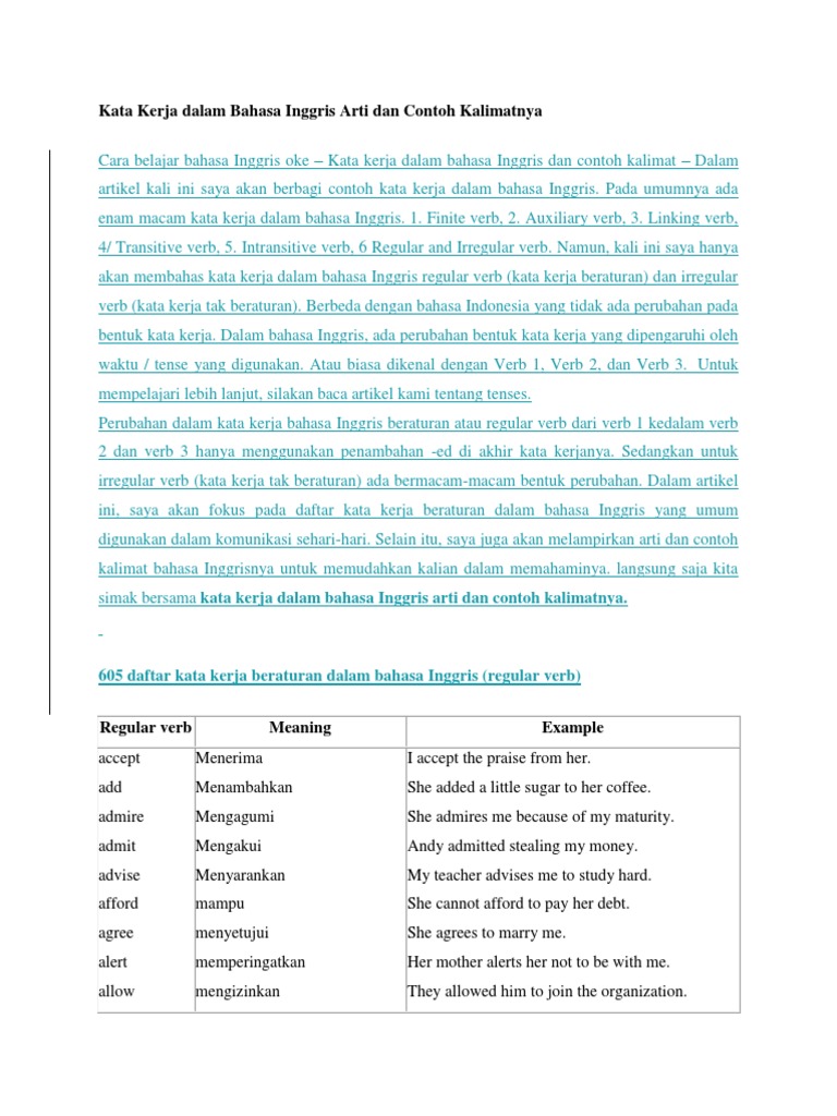 360 Contoh Regular Verb Verb123 Dan Artinya A Z Kata Kerja
